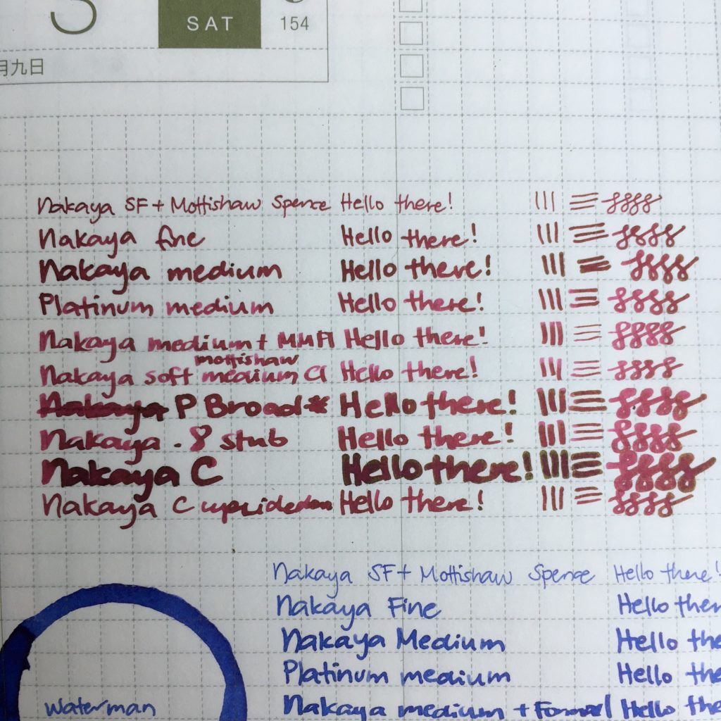 Hello again, it’s me, Katherine, going rogue on one of these mini reviews (complete with unadjusted iPhone photos — sorry). This time I sat down and did writing samples with every Nakaya and Platinum 3776 nib I had on hand.